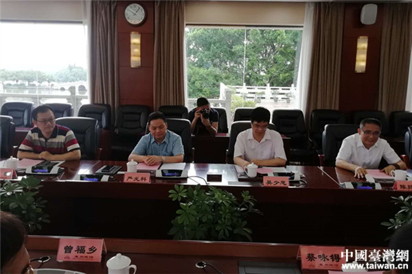惠州市委臺辦、市衛(wèi)計局負責人與考察團一行座談交流。(圖片來源:惠州市臺辦經(jīng)濟聯(lián)絡科)