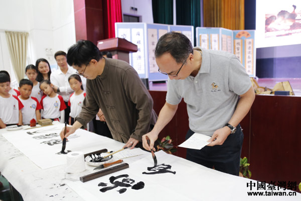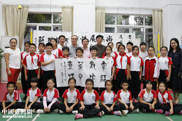 中國(guó)臺(tái)灣網(wǎng)11月20日廣州訊 近日,廣州市黃埔區(qū)臺(tái)辦舉行“對(duì)臺(tái)宣傳教育進(jìn)學(xué)!被顒(dòng),黃埔區(qū)臺(tái)辦主任徐申泉,區(qū)教育局副局長(zhǎng)許衛(wèi)民,市臺(tái)辦及市臺(tái)協(xié)黃埔分會(huì)工作人員,黃埔區(qū)書(shū)法家協(xié)會(huì)成員與東薈花園小學(xué)1800名師生參加了活動(dòng)。