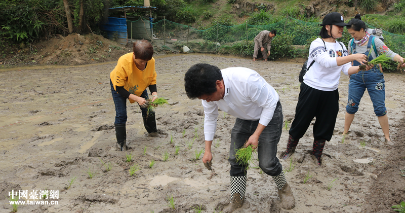 臺(tái)商們?cè)谏巾數(shù)幕实厶镏胁逑麓渚G的秧苗。(圖片來源:中山市臺(tái)灣事務(wù)局)