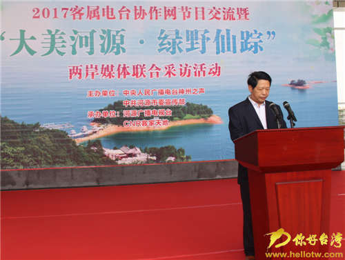 啟動儀式上,中央人民廣播電臺副總編輯楊文延熱烈歡迎參加此次聯(lián)合采訪活動的兩岸媒體記者,并對一直以來支持廣播事業(yè)發(fā)展的各界人士表達(dá)了感謝。楊文延副總編輯表示,由中央人民廣播電臺牽頭成立的客屬電臺協(xié)作網(wǎng),致力于整合海峽兩岸客家電臺的主體力量,成立五年來,已有24家成員臺,在兩岸客屬電臺的聯(lián)絡(luò)與合作方面發(fā)揮著無可替代的作用。希望參加此次聯(lián)合采訪的兩岸媒體記者創(chuàng)新宣傳報(bào)導(dǎo)方式,把河源這座“客家古邑”日新月異的發(fā)展,聚焦在話筒和筆尖,向兩岸聽眾介紹河源發(fā)展建設(shè)中的勃勃生機(jī)、探尋河源豐富的文化資源,在報(bào)導(dǎo)中感受客家原鄉(xiāng)的人文景觀和美麗風(fēng)光。