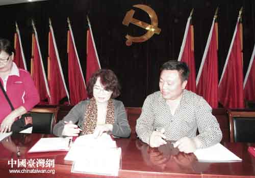 參訪團代表與農(nóng)6師101團3連簽署友好合作意向書。(圖片來源:新疆生產(chǎn)建設(shè)兵團臺辦)
