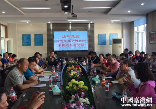 臺(tái)灣北部文教社團(tuán)負(fù)責(zé)人參訪團(tuán)與兵團(tuán)二中交流座談。(圖片來(lái)源:兵團(tuán)臺(tái)辦)