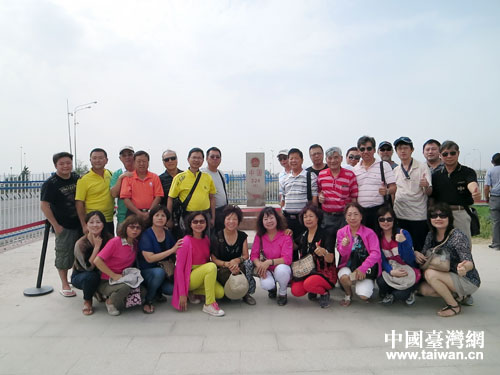 臺(tái)中參訪(fǎng)團(tuán)一行與324號(hào)界碑合影。(中國(guó)臺(tái)灣網(wǎng) 馬一娜 攝)