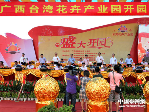 臺灣花卉產(chǎn)業(yè)園項目是2010年7月4日廣西在臺灣舉辦“兩岸產(chǎn)業(yè)高峰會議—2010年桂臺經(jīng)貿(mào)文化合作論壇”期間簽約的示范項目,同時也是廣西“十二五”花卉產(chǎn)業(yè)重點建設(shè)項目,2011年3月開工建設(shè),總投資10.71億元,主要引入臺灣彰化縣田尾鄉(xiāng)“公路花園”模式,面向臺灣花農(nóng)、花卉企業(yè)招商引資,在綠城建設(shè)集花卉生產(chǎn)、休閑旅游、觀光度假為一體的花卉產(chǎn)業(yè)園;▓F錦簇、五彩繽紛的這一花卉產(chǎn)業(yè)園隆重開園迎客,為2012年桂臺經(jīng)貿(mào)文化合作論壇開了個喜慶的“好彩”。