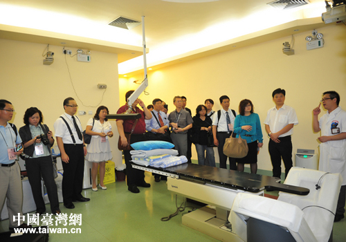 考察團(tuán)參觀桂康醫(yī)院射波刀治療中心。(圖片來源:廣西臺辦)
