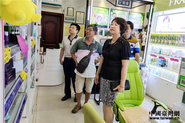2018年6月1日,玉林市臺辦主任楊海潔走訪裝飾堂日化店。(圖片來源:玉林市臺辦)