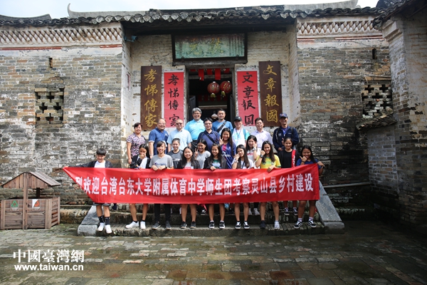 臺灣女子足球隊參訪團參訪靈山大蘆村。(圖片來源:廣西欽州市臺辦)