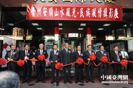 安順市政協(xié)副主席賀未泓,黃果樹旅游集團(tuán)股份有限公司董事長程勇,安順市赴臺展覽和交流有關(guān)部門負(fù)責(zé)人,臺灣立法機(jī)構(gòu)負(fù)責(zé)人王金平、臺灣行政部門負(fù)責(zé)人吳敦義的夫人蔡玲怡、臺中市議長張宏年、臺灣中華書畫學(xué)會理事長游慶隆、臺灣法務(wù)部門前負(fù)責(zé)人施茂林、臺灣貴州同鄉(xiāng)會理事長申玉玲、前理事長饒德俊,臺灣文化藝術(shù)發(fā)展促進(jìn)會董事長樊興漢,大安國際集團(tuán)臺灣董事長孟昭熙、總經(jīng)理顧正隆,日出藝術(shù)公司董事長、臺灣著名攝影家林藝斌出席了開幕式并剪彩。