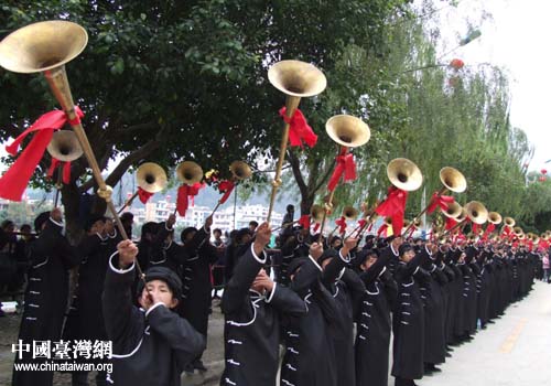 開幕式現(xiàn)場三都水族長號(圖片來源:黔南州臺辦潘福強)