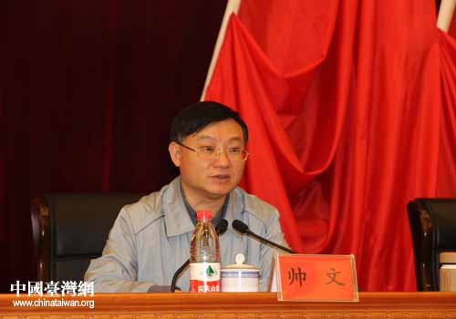 帥文充分肯定去年全市對(duì)臺(tái)工作,他指出,2011年,全市各級(jí)各部門和對(duì)臺(tái)工作系統(tǒng)認(rèn)真貫徹中央對(duì)臺(tái)工作方針政策,推動(dòng)對(duì)臺(tái)工作不斷創(chuàng)新發(fā)展,如成功舉辦“筑臺(tái)兩地中醫(yī)藥文化研討暨項(xiàng)目推介會(huì)”、“在臺(tái)筑籍新娘爽爽貴陽行”和“筑臺(tái)兩地書畫藝術(shù)交流展”等大型涉臺(tái)交流活動(dòng),完成《從陽明文化看筑臺(tái)情緣》專題片的拍攝和“貴陽市小河經(jīng)濟(jì)技術(shù)開發(fā)區(qū)系列報(bào)道”工作,為推動(dòng)兩岸關(guān)系和平發(fā)展作出了積極貢獻(xiàn)。
