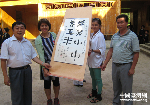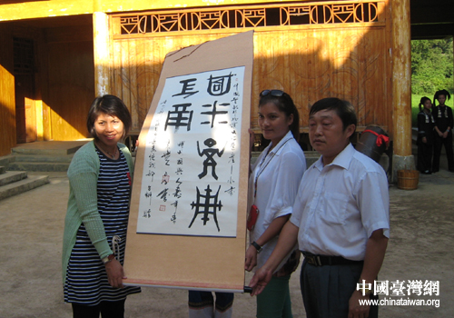 中國(guó)臺(tái)灣網(wǎng)7月19日黔南消息 日前,2012年臺(tái)胞青年夏令營(yíng)貴州分營(yíng)在黔南三都水族自治縣觀光考察結(jié)束,縣委統(tǒng)戰(zhàn)部受縣人民政府的委托、代表全縣30多萬(wàn)水族人民,給全體營(yíng)員贈(zèng)送了“中華兒孫萬(wàn)年興”、“國(guó)興人壽年春”兩幅水書作品。臺(tái)胞帶隊(duì)老師呂素貞接到條幅表示,一定要珍惜,攜手并進(jìn),造福于子孫后代。(中國(guó)臺(tái)灣網(wǎng)黔南州臺(tái)辦通訊員 羅世云)