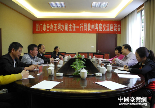 中國臺(tái)灣網(wǎng)10月8日黔西南消息 日前,廈門市臺(tái)辦王明水副主任、張殿亮副巡視員一行6人到黔西南州考察交流。一到黔西南,馬上和黔西南州臺(tái)辦同志一道召開了對(duì)臺(tái)工作座談會(huì)。州人民政府州長助理董洪亮出席座談會(huì)并致辭,州臺(tái)辦楊麗敏主任介紹了黔西南州近年來對(duì)臺(tái)工作情況。