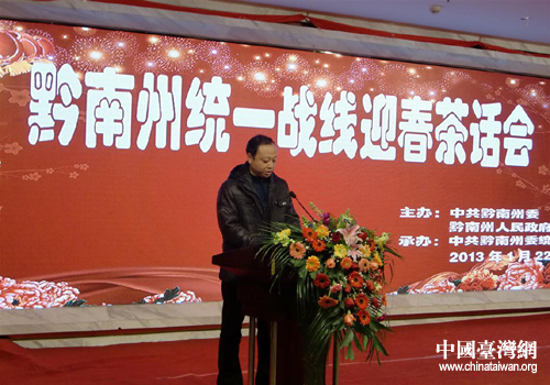 中國(guó)臺(tái)灣網(wǎng)1月28日都勻消息 日前,黔南州委、州人民政府在都勻市舉行黔南州統(tǒng)一戰(zhàn)線迎春茶話會(huì)。州委副書(shū)記、州人民政府州長(zhǎng)向紅瓊、州人大常委會(huì)主任羅毅、州政協(xié)主席高金林、州副書(shū)記吳勝華等州領(lǐng)導(dǎo)出席,10名臺(tái)胞臺(tái)商臺(tái)屬代表和150多名各族各界代表一同參加。