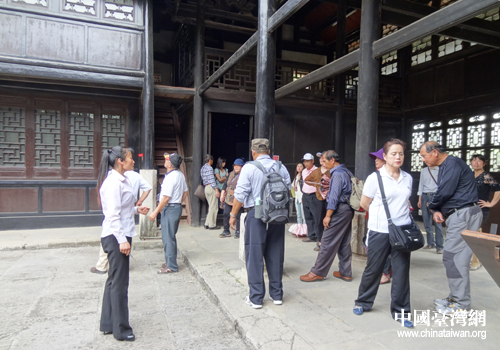 導(dǎo)游在向參訪團(tuán)介紹劉氏家族歷史。(孫政文 攝)