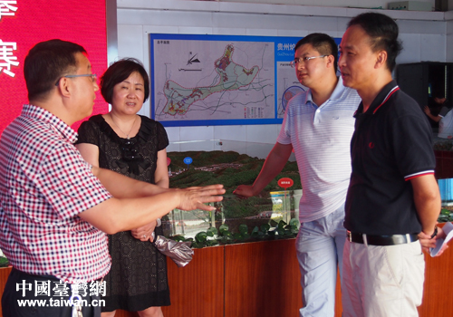 調(diào)研組一行在聽取園區(qū)建設(shè)情況介紹。(圖片來源:凱里市臺辦)