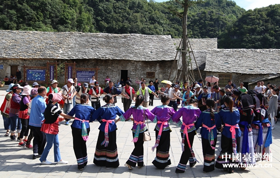臺灣少數(shù)民族代表團在千年布依古寨高蕩村與當?shù)夭家雷宕迕窀栉杌。布依族村民為臺灣同胞表演頭巾舞、迎客山歌等,臺灣同胞帶來賽德克族的狩獵歌和布隆族的合唱等節(jié)目。兩地少數(shù)民族還手牽手高歌“我們是一家人,永遠的一家人!迸_灣少數(shù)民族代表團考察了布依族蠟染傳統(tǒng)工藝,參觀高蕩村民俗文化館,發(fā)現(xiàn)布依族祖先用的很多農(nóng)耕器具有很多相同之處,來自臺灣布隆族的伍木成先生表示,相隔遙遠的兩地少數(shù)民族生活生產(chǎn)上非常默契地相似,說明他們的祖先與大陸同源同種,來到高蕩看到一排排的石板房,讓他感覺又回到了家鄉(xiāng)。