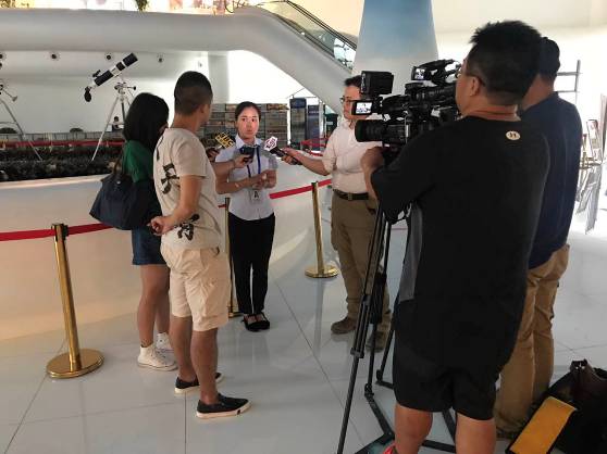 在平塘國(guó)際天文體驗(yàn)館,兩岸媒體團(tuán)觀看天文射電望遠(yuǎn)鏡模型,了解恒心、引力波、黑洞、太陽(yáng)系家族等相關(guān)天文知識(shí)。參觀結(jié)束后,臺(tái)灣媒體人一致認(rèn)同:天文體驗(yàn)館是一個(gè)非常好的天文科普基地,值得向廣大臺(tái)灣同胞推廣。
