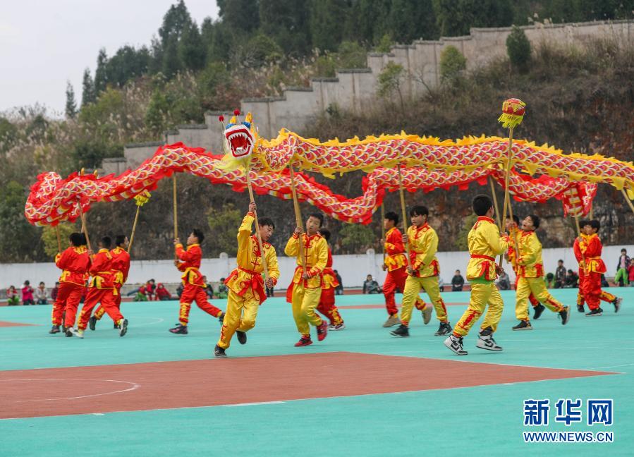 12月25日,在玉屏侗族自治縣朱家場鎮(zhèn)興隆小學(xué),學(xué)生們表演舞龍。
