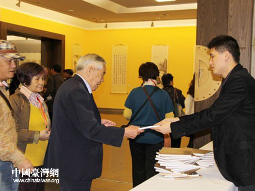 現(xiàn)場(chǎng)贈(zèng)閱“筑臺(tái)兩地書(shū)畫(huà)藝術(shù)家作品集”(貴陽(yáng)市臺(tái)辦 胡珊珊 攝)