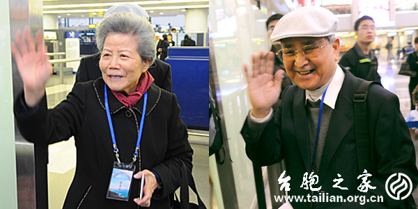 參訪團(tuán)團(tuán)長林麗韞(左)、副團(tuán)長田富達(dá)(右)向前來送行的全國臺聯(lián)領(lǐng)導(dǎo)揮手致謝!徐波 攝