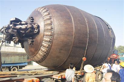武漢重工鑄鍛有限公司負責(zé)人14日介紹說,該鐘由廣西柳州西來寺訂購,2009年7月開始鑄造,經(jīng)過激光刻字、外模拼裝、泥芯鑄造、鑄型烘烤、整體澆鑄等10多道復(fù)雜工序后,目前大鐘正在做外表清整,預(yù)計本月底完工。佛鐘將于7~9月份通過水路運輸,經(jīng)長江運往上海,再海運至廣州,經(jīng)珠江水系至柳江,最后到達西來古寺。