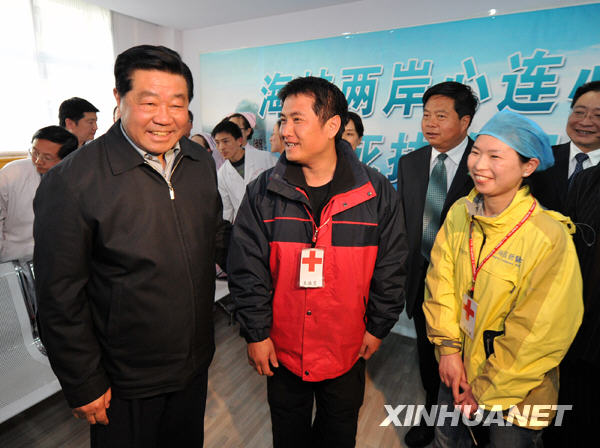 4月26日,中共中央政治局常委、全國政協(xié)主席賈慶林在青海省西寧市第一人民醫(yī)院看望臺(tái)灣醫(yī)療救援隊(duì)成員,代表胡錦濤總書記、大陸同胞尤其是災(zāi)區(qū)群眾,向臺(tái)灣醫(yī)療救援隊(duì)全體成員表示誠摯的感謝,并請(qǐng)他們向所有關(guān)心和支持抗震救災(zāi)的臺(tái)灣同胞轉(zhuǎn)達(dá)真誠的謝意。