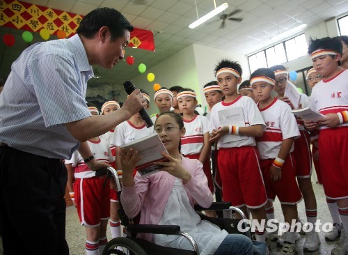 5月26日,正在臺(tái)灣參加“天府四川寶島行”活動(dòng)的中共四川省委書記劉奇葆一行來到臺(tái)灣“9·21”地震災(zāi)區(qū)埔里小學(xué)參觀考察。當(dāng)來自汶川地震災(zāi)區(qū)的“芭蕾女孩”李月將她在震后所寫的書《我心永舞》贈(zèng)送給埔里師生時(shí),劉奇葆靜靜來到李月身邊,與李月一起將書送給埔里小學(xué)圖書館后,親自推著輪椅將李月送下舞臺(tái)。
