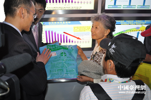 田外美代在一樓互動(dòng)體驗(yàn)區(qū)參觀時(shí),對(duì)臺(tái)北參展的兩個(gè)案例特別感興趣,館長(zhǎng)陳慶安特別向她介紹臺(tái)北市專用垃圾袋。她表示要將垃圾袋帶回東京,交給東京市政府參考,因?yàn)榕_(tái)北的環(huán)保政策“做得比日本還要好!”陳慶安也特別代表臺(tái)北市長(zhǎng)郝龍斌邀請(qǐng)她11月到臺(tái)北參加花卉博覽會(huì),并贈(zèng)送她花博一日券,田外美代一口答應(yīng),花博開(kāi)展后,她要到臺(tái)北當(dāng)“花博奶奶”。
