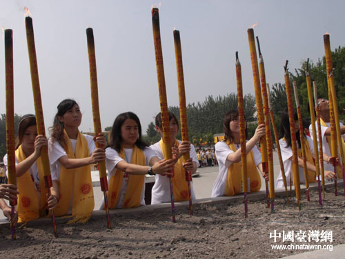 臺灣青年代表向黃帝像上香。圖片來源:河南省臺辦