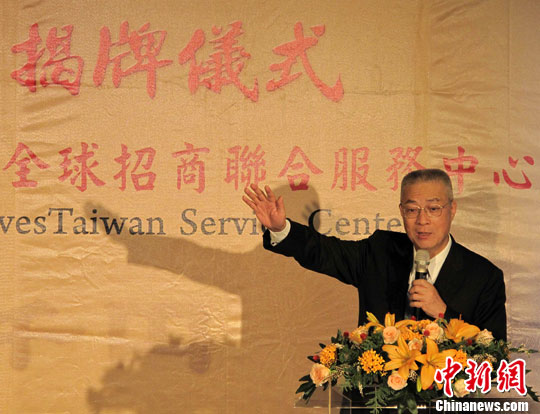 兩岸經(jīng)濟(jì)合作框架協(xié)議(ECFA)簽署之后,臺灣當(dāng)局努力推動(dòng)經(jīng)濟(jì)轉(zhuǎn)型升級,為開創(chuàng)臺灣經(jīng)濟(jì)發(fā)展的“黃金十年”主動(dòng)出擊,積極招商布局。圖為臺灣“行政院長”吳敦義在揭牌儀式上指出,ECFA將給臺灣產(chǎn)業(yè)的發(fā)展與轉(zhuǎn)型帶來契機(jī)。中新社發(fā) 路梅 攝