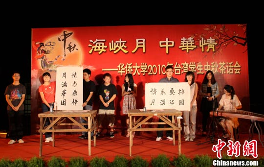 華僑大學(xué)副校長關(guān)一凡到場與同學(xué)們共同聯(lián)歡,他表示,“華大現(xiàn)有臺灣學(xué)生108名,其中,今年的臺灣新生有36名”。華大臺灣學(xué)生中秋茶話會至今已經(jīng)舉辦了十幾屆,不僅成為了弘揚(yáng)校園文化的平臺,也有利于兩岸學(xué)子、海內(nèi)外學(xué)生更好的交流。 (孫虹 雷偉軍)