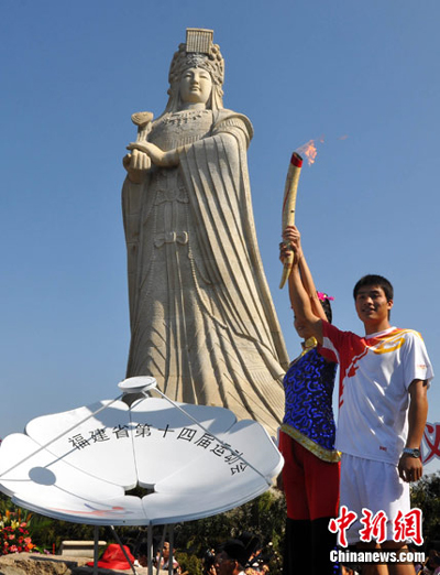 9月26日,福建省第十四屆運(yùn)動(dòng)會(huì)圣火采集儀式在“媽祖故里”莆田湄洲島媽祖圣像廣場(chǎng)舉行,這是繼今年7月21日中國(guó)第五屆特殊奧林匹克運(yùn)動(dòng)會(huì)圣火采集儀式在湄洲島媽祖雕像前舉行后,媽祖故里再次點(diǎn)燃圣火。圣火采集儀式結(jié)束后,火炬?zhèn)鬟f啟動(dòng)儀式隨即在湄洲島天后廣場(chǎng)舉行,來自福建各地、臺(tái)灣金門等兩岸14名火炬手在湄洲島進(jìn)行火炬?zhèn)鬟f,沿途上千名群眾載歌載舞,與火炬手一同感受火炬?zhèn)鬟f帶來的快樂、平安和吉祥。