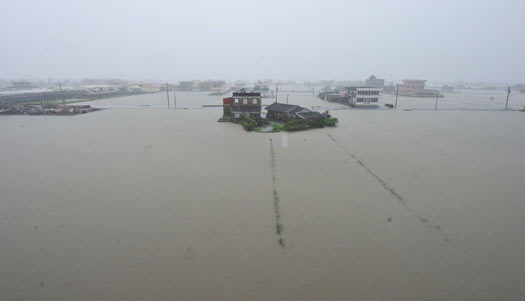 臺風(fēng)“梅姬”(大陸稱“鲇魚”)暴風(fēng)圈外圍已接觸陸地,帶來驚人降雨,21日北臺灣宜蘭縣一片水鄉(xiāng)澤國。圖片來源:“中央社”