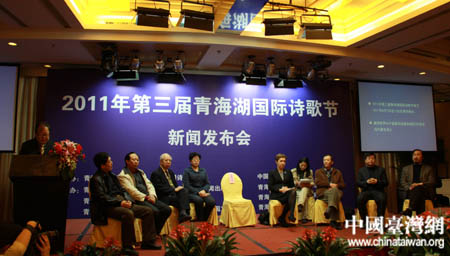 中國(guó)臺(tái)灣網(wǎng)2月24日北京消息 青海省人民政府、中國(guó)詩(shī)歌學(xué)會(huì)、中國(guó)少數(shù)民族作家學(xué)會(huì)今(24日)日在京共同舉辦“2011年第三屆青海湖國(guó)際詩(shī)歌節(jié)”新聞發(fā)布會(huì)。中共青海省委常委、宣傳部長(zhǎng)、詩(shī)人、青海湖國(guó)際詩(shī)歌節(jié)主席吉狄馬加,立陶宛駐華大使麗娜?安塔納維切涅,翻譯家葉廷芳、趙振江等參加了新聞發(fā)布會(huì)。