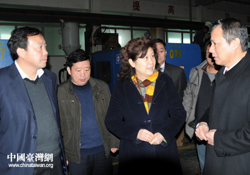 山東省臺(tái)辦主任張雪燕在泰安臺(tái)資企業(yè)泰盟電器考察調(diào)研。(圖片來(lái)源:山東省臺(tái)辦)