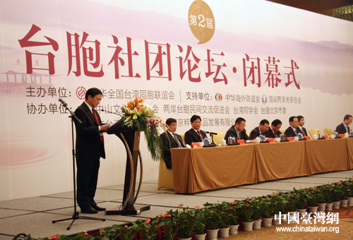 中國(guó)臺(tái)灣網(wǎng)5月13日北京消息 5月11日至12日,由中華全國(guó)臺(tái)灣同胞聯(lián)誼會(huì)主辦的、以“進(jìn)一步發(fā)揮臺(tái)胞社團(tuán)作用,促進(jìn)兩岸關(guān)系和平發(fā)展”為主題的“第二屆臺(tái)胞社團(tuán)論壇”在北京舉行。來(lái)自海峽兩岸、港澳及海外的160多家臺(tái)胞社團(tuán),260余位社團(tuán)領(lǐng)袖和代表們出席了本屆論壇,與會(huì)代表圍繞“加強(qiáng)兩岸經(jīng)貿(mào)交流,深化兩岸經(jīng)濟(jì)合作”、“深化兩岸文化交流,共同弘揚(yáng)中華文化”、“充分發(fā)揮臺(tái)胞社團(tuán)作用,深化兩岸關(guān)系和平發(fā)展”三個(gè)議題積極思考,踴躍發(fā)言。論壇牢牢把握兩岸關(guān)系和平發(fā)展的新形勢(shì),明確了臺(tái)胞社團(tuán)新任務(wù),匯聚了廣泛共識(shí),取得了可喜成果。