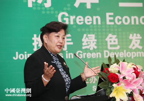 中國民族貿(mào)易促進會執(zhí)行會長劉延寧女士作題為《現(xiàn)代正義觀與綠色中國》的主題演講。(貴陽市臺辦 胡珊珊 攝)