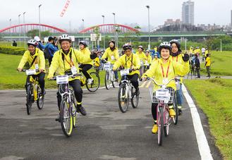 顏志榮昨天中午一馬當(dāng)先,率領(lǐng)團(tuán)員騎自行車從古亭河濱公園出發(fā),至華中露營場,騎程約5公里,漫游河濱公園,另一組“挑戰(zhàn)組”從大佳河濱公園出發(fā),騎完25公里。