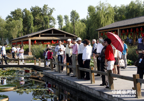 24日,江丙坤和夫人,以及參加活動的臺灣嘉賓在鐵嶺市委書記吳野松的陪同下,參觀了鐵嶺蓮花湖濕地森林公園。(中國臺灣網(wǎng) 普燕 攝)