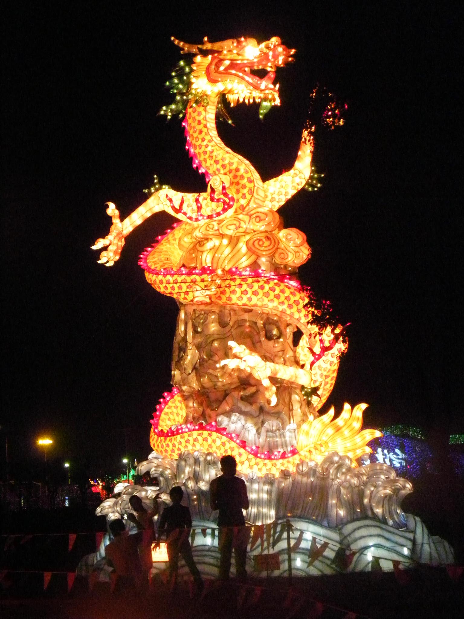 薈萃兩岸傳統(tǒng)文化的首屆海峽兩岸(昆山)中秋燈會(huì)9月14日晚首度試燈,當(dāng)晚60多組大型燈組、30萬平方米七大主題燈區(qū)美輪美奐。一組組流光溢彩的花燈呈現(xiàn)著兩岸相近的中秋民俗傳統(tǒng)、文化風(fēng)貌以及風(fēng)格各異的江南水鄉(xiāng)元素、臺(tái)灣媽祖文化等特色文化,兩岸民眾喜聞樂見的花卉、寓意吉祥的文化元素交相輝映。圖為燈組金龍獻(xiàn)瑞,預(yù)示風(fēng)調(diào)雨順、四季平安。黃瑩 攝