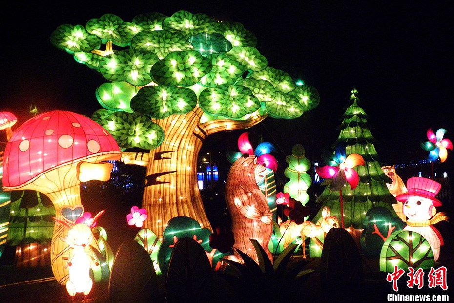 薈萃兩岸傳統(tǒng)文化的首屆海峽兩岸(昆山)中秋燈會(huì)9月14日晚首度試燈,當(dāng)晚60多組大型燈組、30萬平方米七大主題燈區(qū)美輪美奐。一組組流光溢彩的花燈呈現(xiàn)著兩岸相近的中秋民俗傳統(tǒng)、文化風(fēng)貌以及風(fēng)格各異的江南水鄉(xiāng)元素、臺(tái)灣媽祖文化等特色文化,兩岸民眾喜聞樂見的花卉、寓意吉祥的文化元素交相輝映。圖為浪漫游樂區(qū)燈組熊出沒,以國(guó)產(chǎn)動(dòng)畫片《熊出沒》為主題,可愛的動(dòng)漫人物、轉(zhuǎn)動(dòng)的風(fēng)車帶來叢林的無窮歡樂。黃瑩 攝