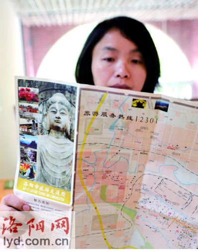 臺(tái)灣同胞翻看洛陽(yáng)旅游交通圖 記者 陳占舉 攝