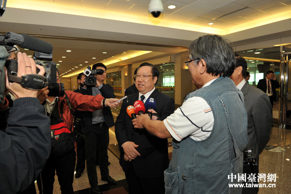 湖北省委常委、常務(wù)副省長王曉東在機(jī)場接受臺灣媒體采訪。(圖片來源:湖北省臺辦)