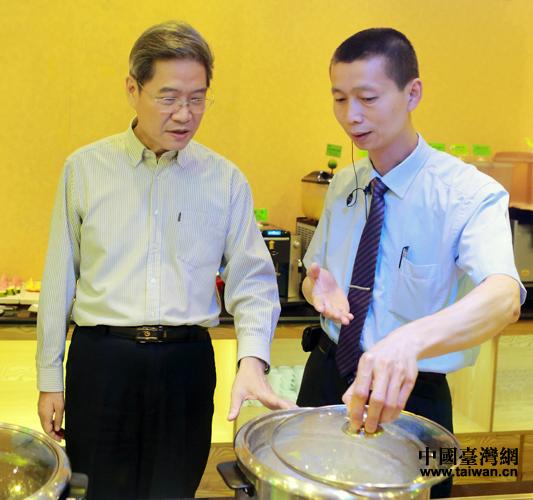 中共中央臺(tái)辦、國務(wù)院臺(tái)辦主任張志軍14日下午在浙江杭州考察臺(tái)資企業(yè)“素·繽紛”素食餐廳。(中國臺(tái)灣網(wǎng) 于斯文 攝)