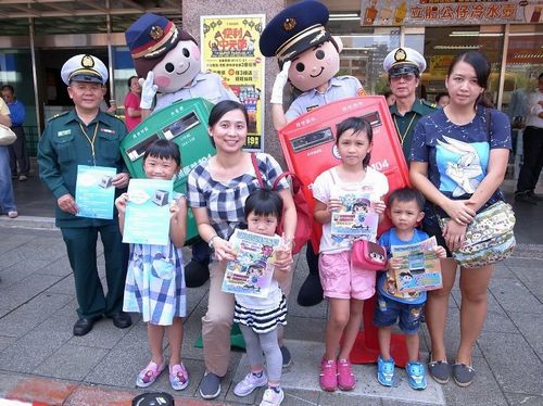 由于在“歪腰郵筒”旁排隊人潮眾多,臺北中山警分局不僅派人疏導交通,也發(fā)現(xiàn)現(xiàn)場有很多小朋友,便趁勢派出兩名警察扮演的Q版警察人偶,到場倡導如何預防詐騙和防扒竊等知識,并發(fā)放宣傳單,果然吸引不少民眾前來仔細聆聽,還要求警察人偶一起“歪腰合影”,民眾反應熱烈,直呼“沒想到跟郵筒拍照還能增長知識呢!”