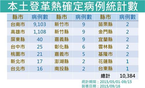 中新網(wǎng)9月16日電 據(jù)臺(tái)灣“中央社”報(bào)道,臺(tái)當(dāng)局“衛(wèi)生福利部疾病管制署”16日更新本土登革熱病例數(shù),自今年5月至今,全臺(tái)病例數(shù)達(dá)10384例,其中臺(tái)南市有9103例、高雄市有1108例。