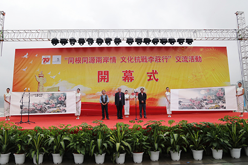 晏永和宣布活動開幕。王銘暉在致辭中說,在宜賓李莊隆重舉行“同根同源兩岸情?文化抗戰(zhàn)李莊行”主題活動,共同舉紀念中國人民抗日戰(zhàn)爭暨世界反法西斯戰(zhàn)爭勝利70周年,有著特別的意義。70多年前,在民族危亡的關鍵時刻, 處于西南邊陲的古鎮(zhèn)李莊發(fā)出“同大遷川,李莊歡迎;一切需要,地方供給!16字電文,從此義無反顧地肩負起了文化救國的歷史重任,用博大胸懷和氣量接納了中國國立中央研究院、中央博物院等科研院所學校,以及梁思成、林徽因、李濟、傅斯年、董作賓等一批學術大家和無數(shù)的革命知識分子。李莊在抗戰(zhàn)中錘煉出的愛國主義精神、抗戰(zhàn)必勝的信念、矢志求真的毅力、民族復興的壯志等寶貴的精神財富,正在兩岸同胞代代相傳,也因為這份深深的李莊情節(jié),將內(nèi)陸城市宜賓與臺灣同胞緊緊地聯(lián)系在了一起。雙方交流合作不斷加強,經(jīng)濟聯(lián)系日益密切,文化交流更趨活躍。希望以此為契機,共同把李莊打造為兩岸文化交流的又一個重要基地,為弘揚傳承李莊抗戰(zhàn)文化精神作出新的更大貢獻。