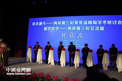 中國臺灣網(wǎng)1月20日鄭州訊 1月19日上午,由中華文物交流協(xié)會指導、河南省文物局主辦、河南博物院與臺北歷史博物館及鴻禧藝術文教基金會共同承辦的“會古通今——兩岸唐三彩暨低溫釉陶學術研討會及兩岸唐三彩交流展”在河南博物院隆重舉行。國臺辦交流局副局長李京文、中華文化交流協(xié)會副會長、國家文物局副局長劉曙光、河南省文物局局長陳愛蘭、省臺辦副主任尚潤澤、河南省博物院院長田凱,臺北歷史博物館館長張譽騰、臺灣鴻禧藝術文教基金會廖桂英女士,以及兩岸文博機構(gòu)和高校的40余位古陶瓷及低溫釉陶領域的專家學者出席開幕式。劉曙光、陳愛蘭、張譽騰、田凱等兩岸文物界有關領導做了熱情洋溢的致辭。