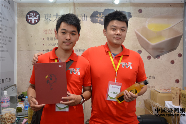 許登輝(右)此次主要來(lái)推介自己生產(chǎn)的苦茶油。(中國(guó)臺(tái)灣網(wǎng) 李寧 攝)