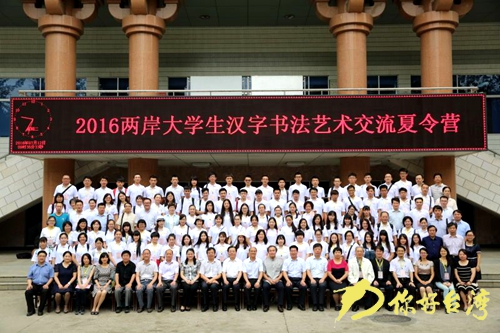 2016兩岸大學(xué)生漢字書法藝術(shù)交流夏令營同日開營。兩岸合編中華語文工具書大陸代總召集人彭興頎,臺灣總召集人、中華文化總會秘書長楊渡為兩岸營員授營旗。今年的夏令營活動是繼2014、2015年分別在浙江紹興文理學(xué)院和臺灣藝術(shù)大學(xué)成功舉辦后,由國家語委牽頭的兩岸合編中華語文工具書大陸編委會和臺灣中華文化總會繼續(xù)聯(lián)合主辦,由陜西省語委辦接力承辦、西安理工大學(xué)和陜西師范大學(xué)兩所高校協(xié)辦的。來自陜西和臺灣高校的十多所高校100名大學(xué)生將在為期8天的時間里,參加漢字書法藝術(shù)講座、書法教學(xué)、書法創(chuàng)作展示、觀摩碑林等活動,通過“體驗式交流”,了解兩岸語言文字使用和交流現(xiàn)狀,體驗兩岸語言文字與文化的“同根同源”“和而不同”,增進理解信任,共同珍惜、尊重和傳承中華優(yōu)秀語言文化,增加對中華文化的熱愛和認同。